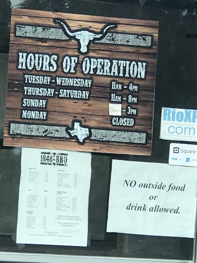 Introducing the menu at 1848 BBQ, a hidden gem in Brownsville, TX, that truly captures the essence of authentic barbecue. Located at 5 Avalon Dr, this unclaimed establishment offers a delightful array of smoked meats, including tender moist brisket and flavorful pulled pork. The sandwiches, such as chopped brisket and hearty sausage, are perfect for a satisfying lunch or group outing.